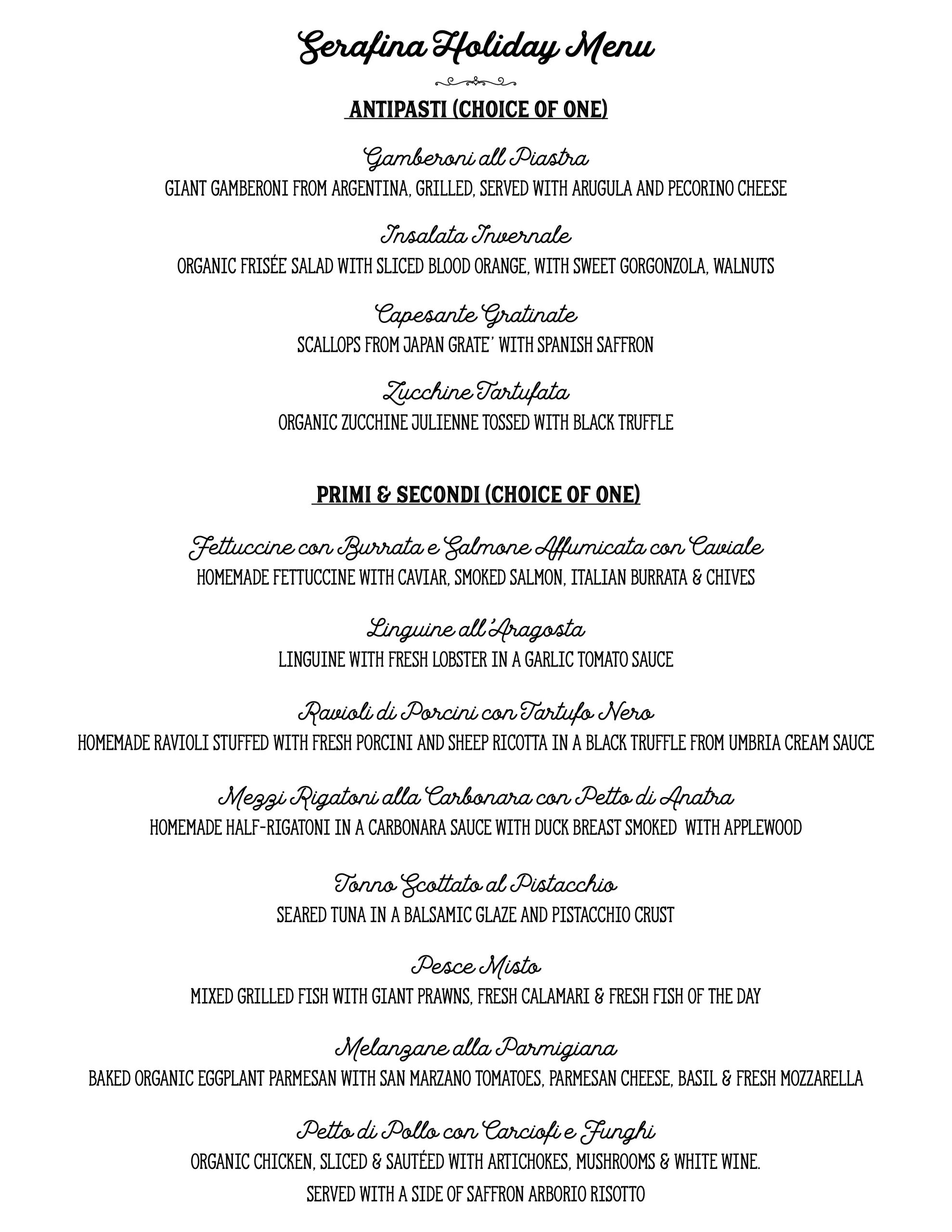 SPECIAL PRIX-FIXE MENU FOR CHRISTMAS EVE AND NEW YEAR'S EVE